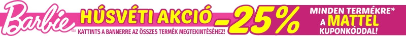 Húsvét alkalmából egy igazán ütős AKCIÓVAL készültünk nektek, hogy a nyuszi idén is a legjobb ajándékokat tehesse a kosárba. 2018.03.22. és 2018.03.29. között MINDEN MATTEL Enchantimals - Fisher-Price - Hot Wheels - Barbie - Verdák és Mega Bloks termékre 25% kedvezményt adunk!